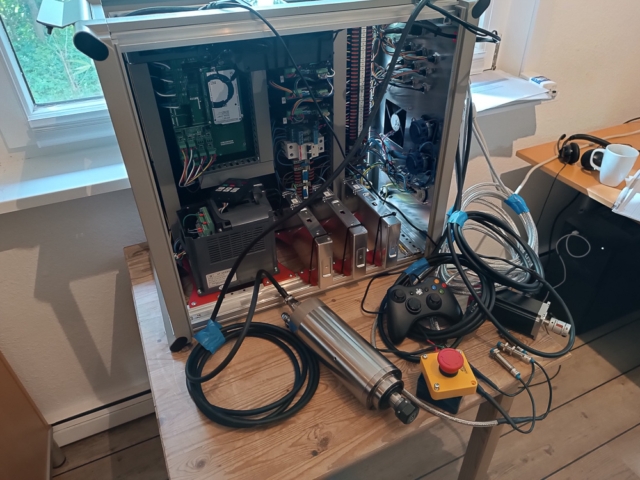 Der Bau der Fräse streckte sich über insgesamt 5 Monate. Ich habe mit dem Aufbau des Schaltschranks angefangen, das passte noch gut in die Winterzeit. Aber 4-adrige geschirmte Leitungen an die passenden Stecker zu löten wird auch zukünftig nicht zu meinen Lieblingsaufgaben gehören. Sonst passten die ausgewählten Teile in den Schaltschrank und ließen sich auch ohne größere Fehler verbinden.
